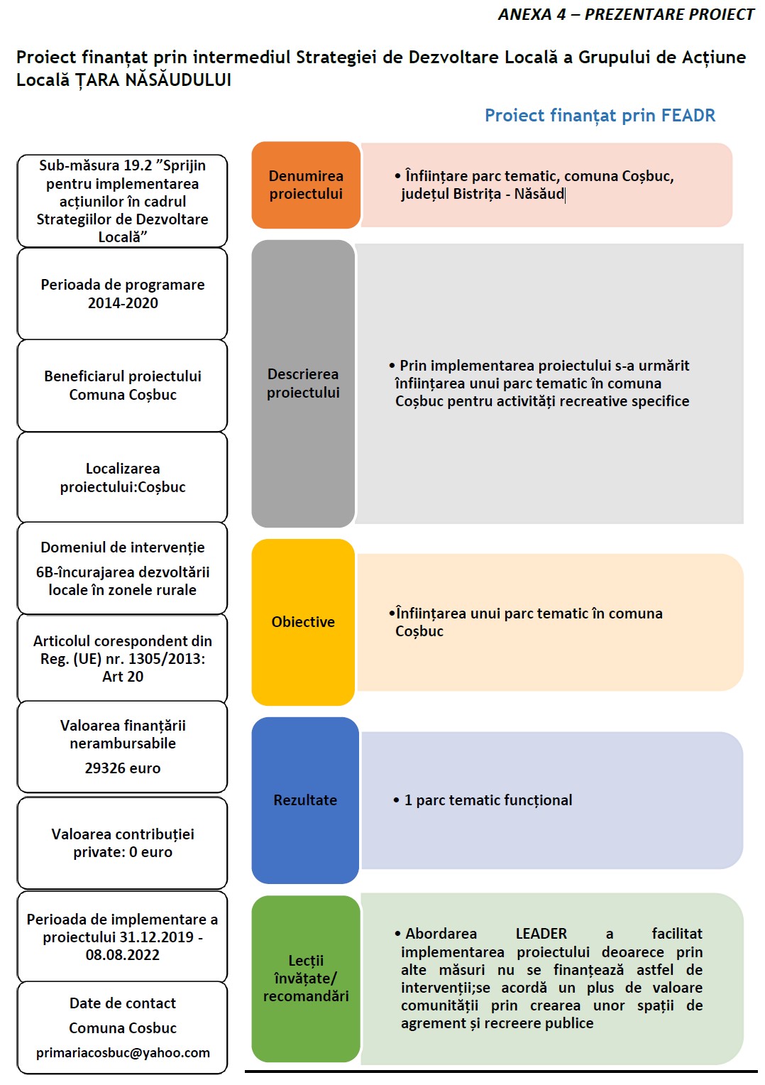 Înființare parc tematic, comuna Coșbuc, județul Bistrița - Năsăud