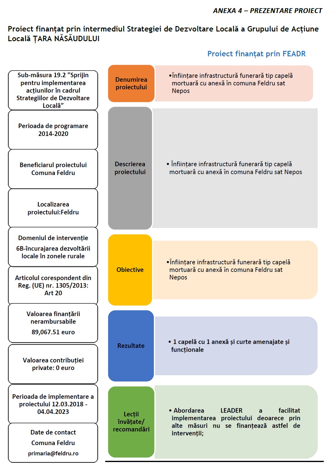Înființare infrastructură funerară tip capelă mortuară cu anexă în comuna Feldru sat Nepos