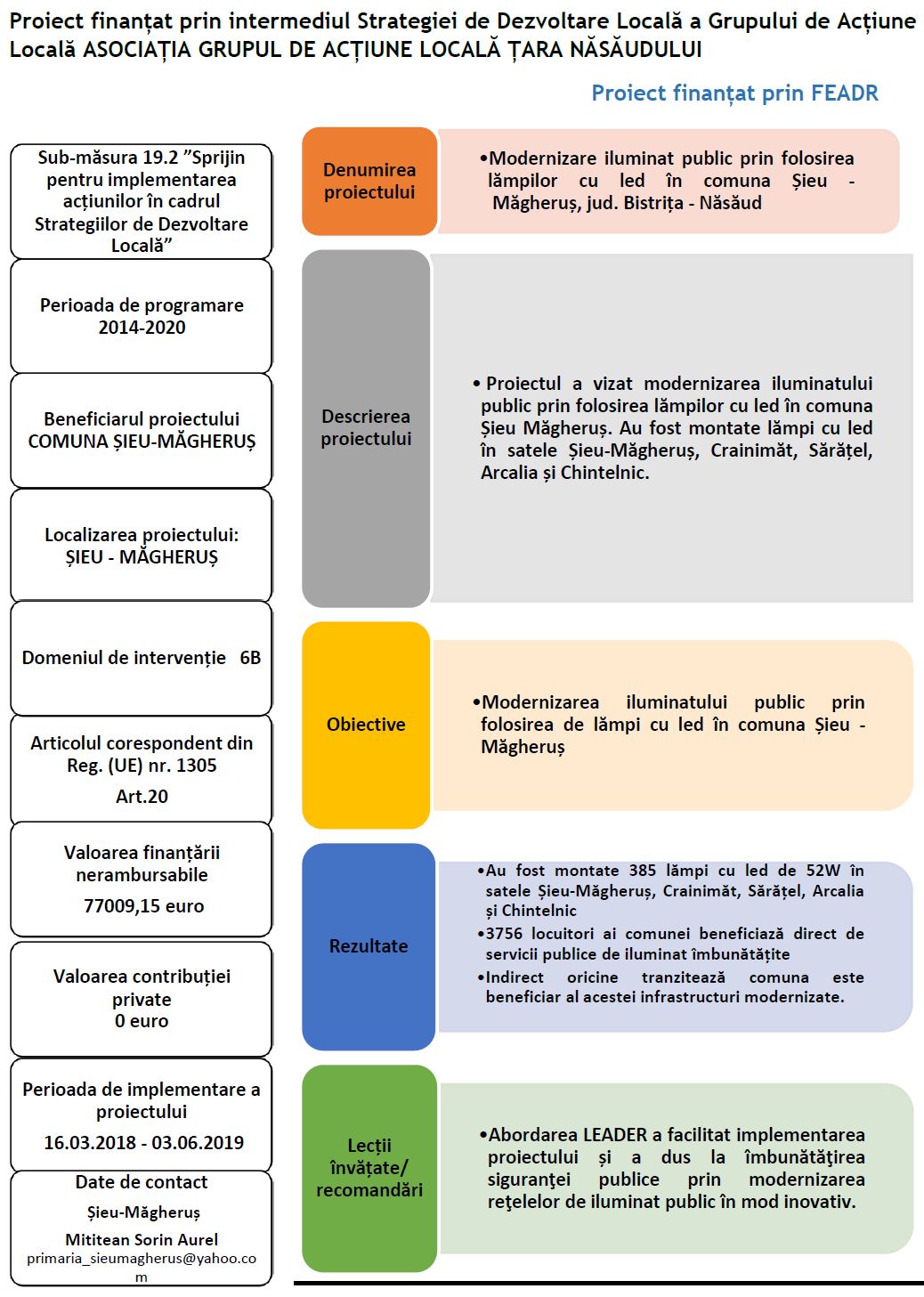 Comuna Șieu-Măgheruș - Modernizare iluminat public prin folosirea lămpilor cu led în comuna Șieu-Măgheruș, jud. Bistrița-Năsăud