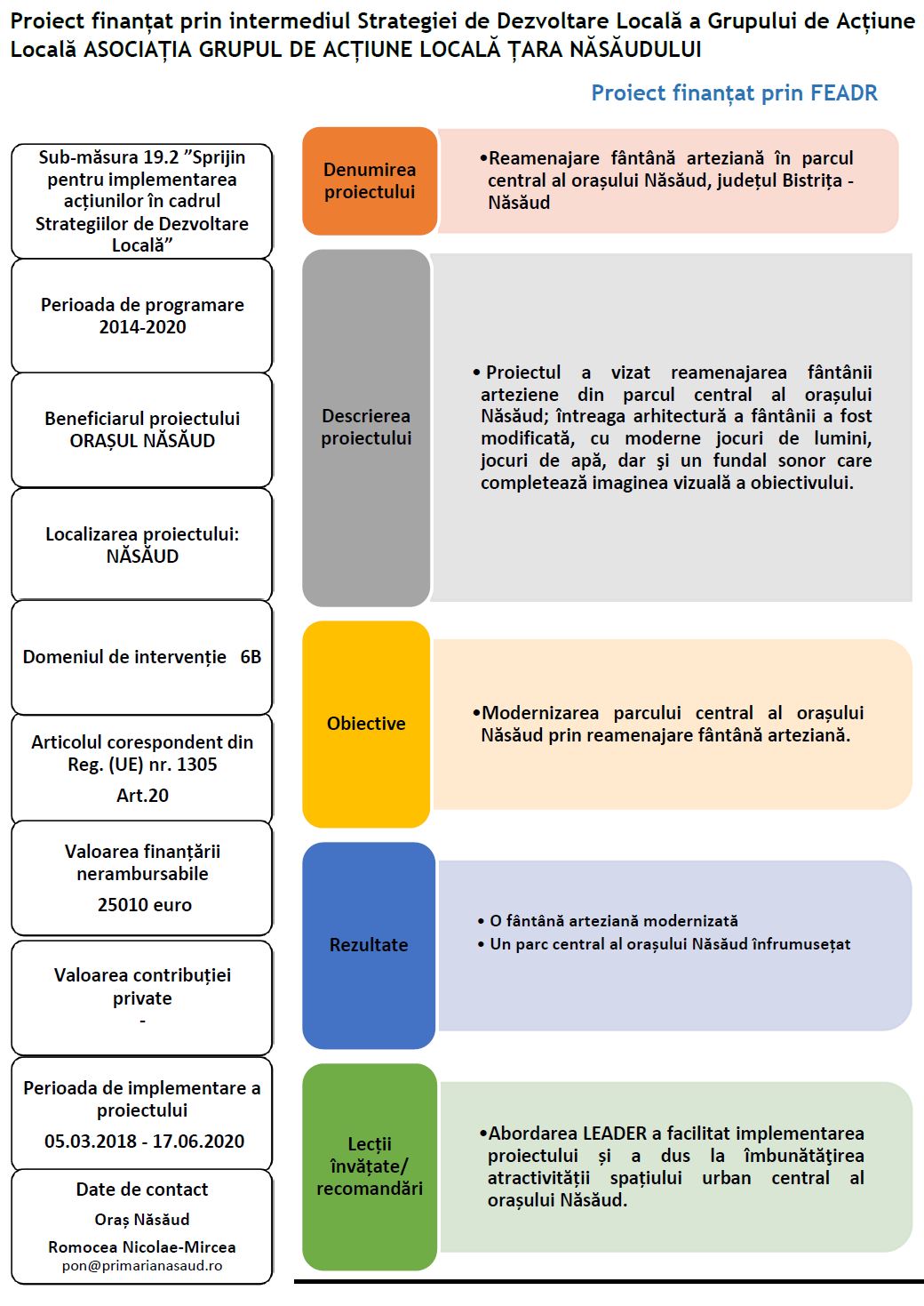 Orașul Năsăud - Reamenajare fântână arteziană în parcul central al orașului Năsăud, județul Bistrița - Năsăud