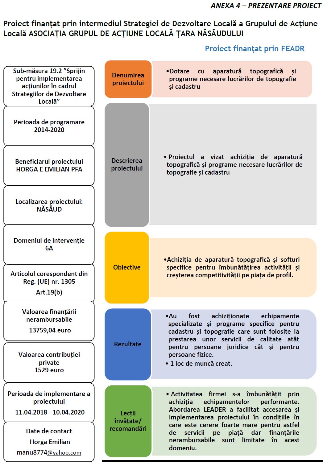 Dotare cu aparatură topografică și programe necesare lucrărilor de topografie și cadastru - HORGA E EMILIAN PFA